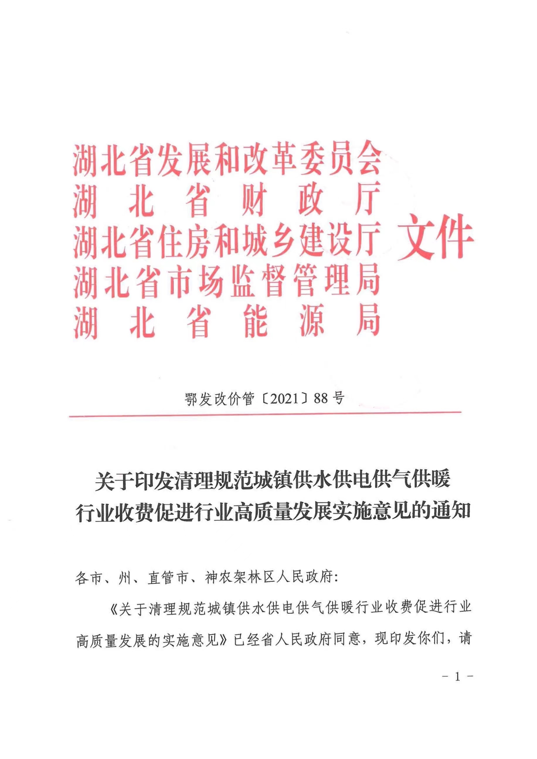 關(guān)于印發(fā)清理規(guī)范城鎮(zhèn)供水供電供氣供暖行業(yè)收費促進(jìn)行業(yè)高質(zhì)量發(fā)展實施意見的通知